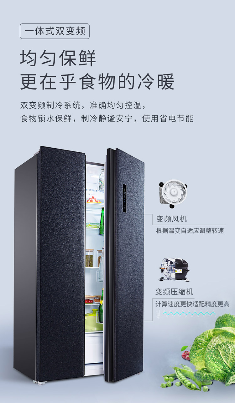商品名称:TCL 520升超薄冰箱 双变频风冷无霜双门 对开门节能家用电冰箱 BCD-520WPJD 星玄青 商品编号:156737 品牌:TCL 上架时间:2020-12-18 商品毛重:84.000千克