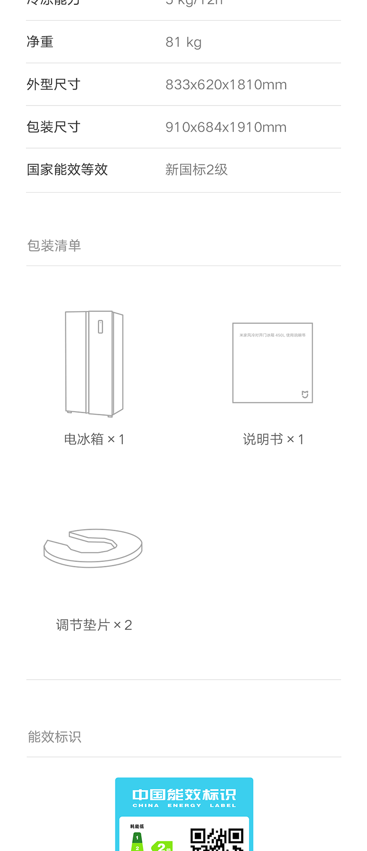 商品名称:米家450L玻璃对开门冰箱 风冷 双变频纤薄嵌入式家用 BCD-450WGSAIMJ01 小米出品 商品编号:156781 品牌:小米 上架时间:2020-12-21 商品毛重:89.000千克