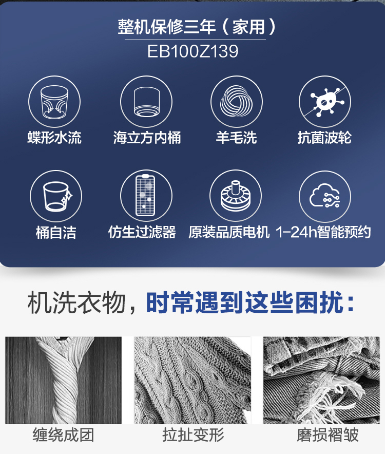 商品名称:海尔(Haier)波轮洗衣机全自动 10kg大容量 特制波轮抗菌率99% 玻璃上盖 自编程随心洗EB100Z139 商品编号:156886 品牌:海尔 上架时间:2020-12-23 商品毛重:42.000千克
