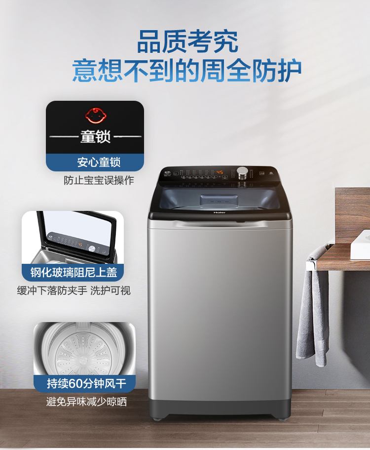 商品名称:海尔(Haier)波轮洗衣机全自动 双动力 防缠绕 10KG直驱变频 可洗真丝ES100BZ199 商品编号:156888 品牌:海尔 上架时间:2020-12-23 商品毛重:42.000千克