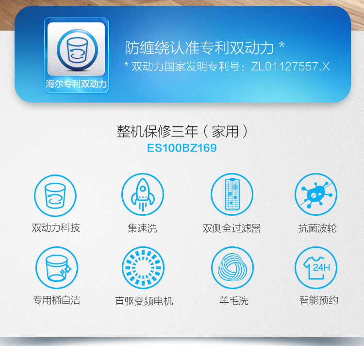 商品名称:海尔(Haier)波轮洗衣机全自动 双动力 防缠绕 10公斤直驱变频 低磨损ES100BZ169 商品编号:156891 品牌:海尔 上架时间:2020-12-23 商品毛重:41.000千克