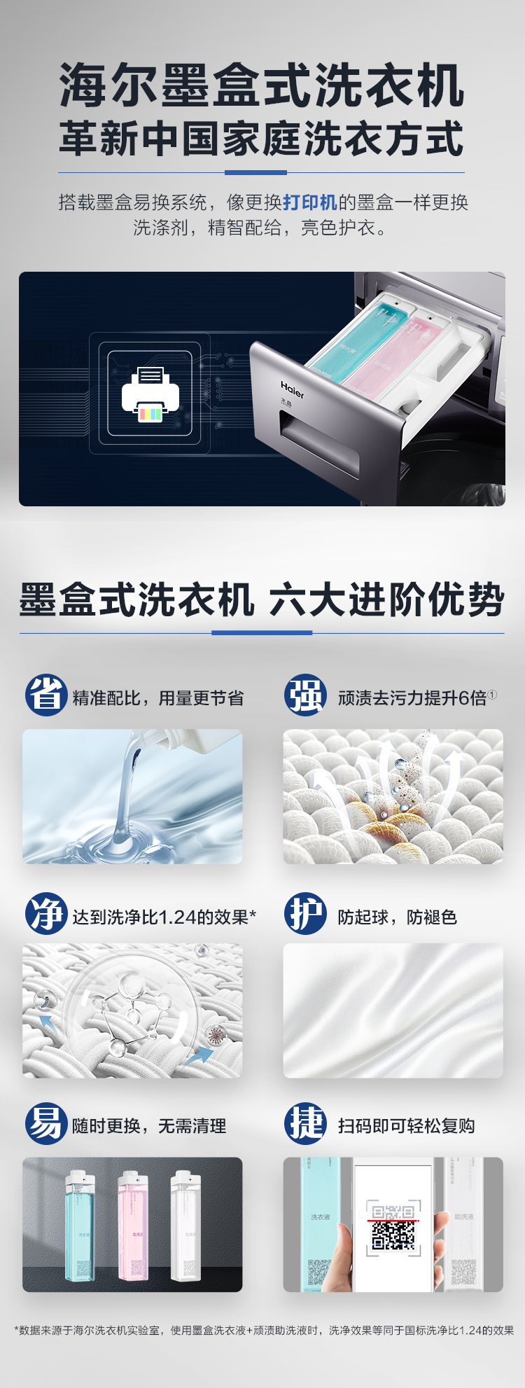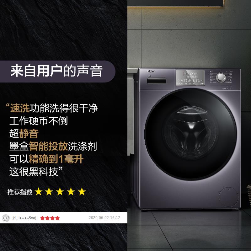 商品名称:海尔(Haier)滚筒洗衣机全自动 墨盒智能配给 洗烘一体 除菌除螨10kg直驱变频 XQG100-HBM14876U1 商品编号:156905 品牌:海尔 上架时间:2020-12-23 商品毛重:81.000千克