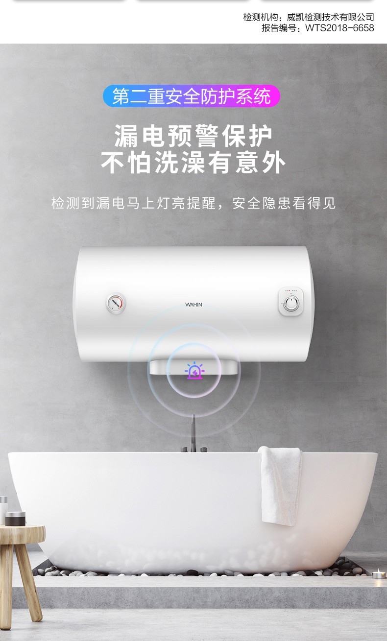 商品名称:美的出品WAHIN华凌50升美的电热水器2100W大功率 经济节能保温型安全防电墙 F5021-Y1 商品编号:157367 品牌:美的 上架时间:2021-01-14 商品毛重:18.000千克
